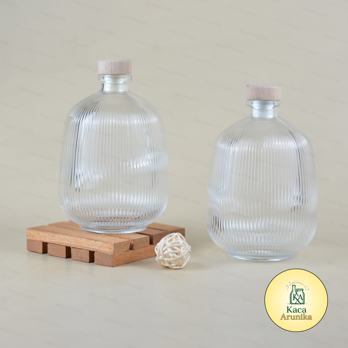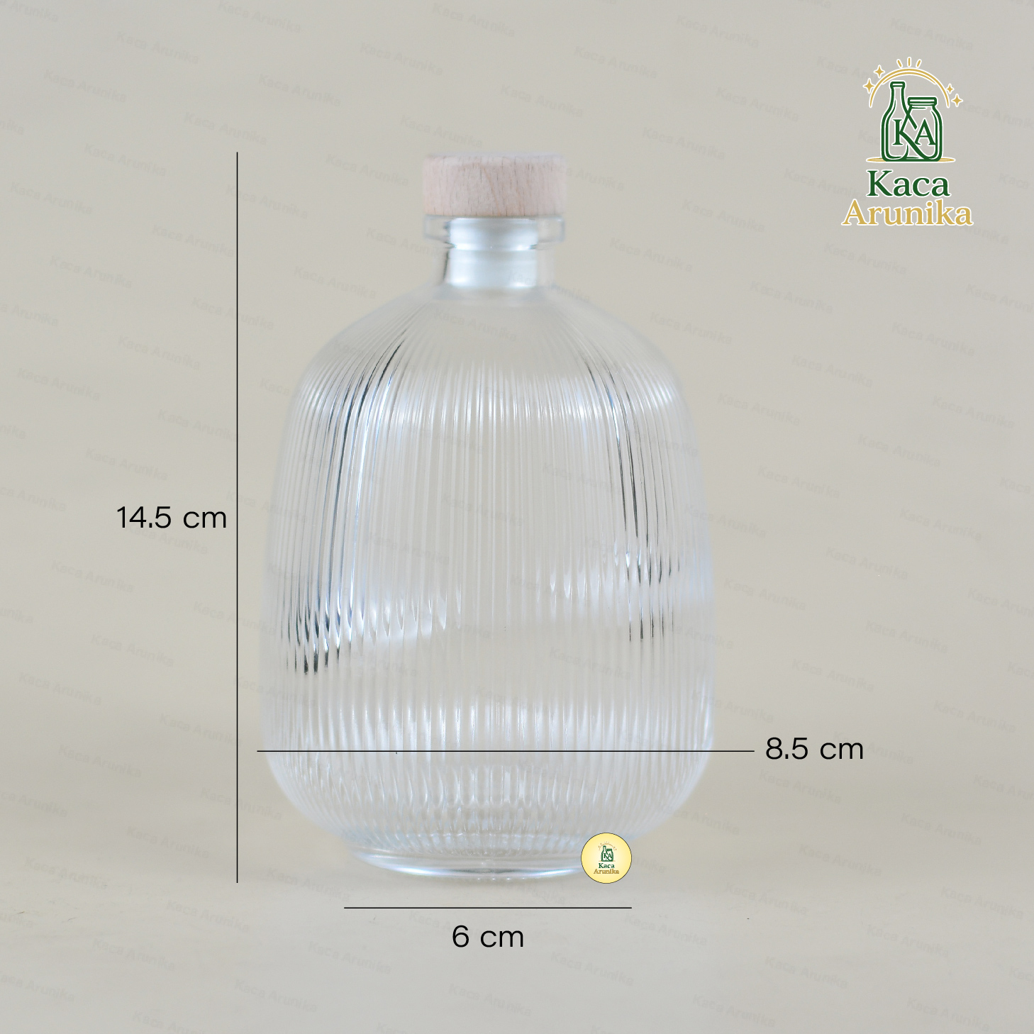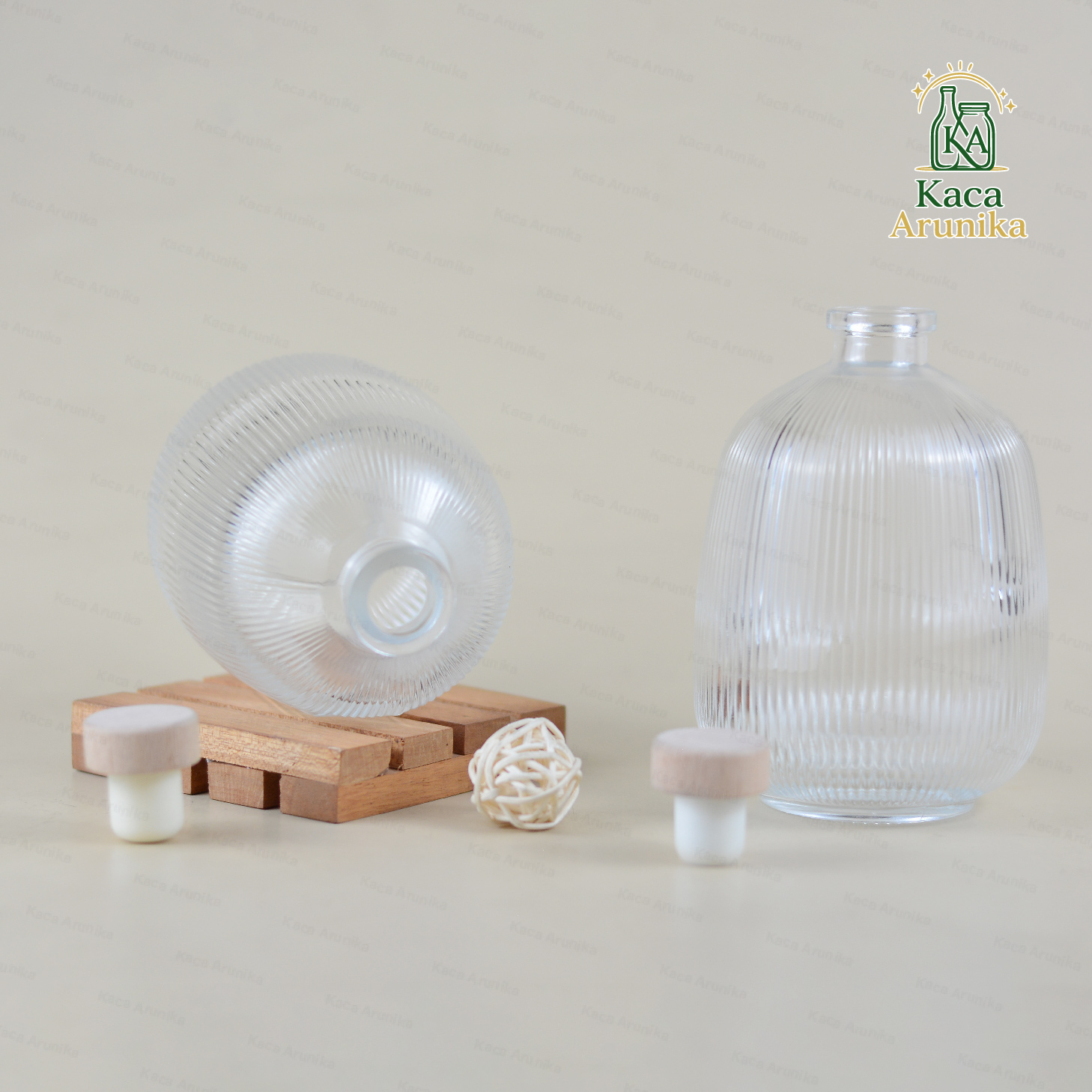Botol Kaca Dome motif garis dengan tutup kayu ini terbuat dari kaca tebal yang kokoh dan elegan. Cocok untuk diffuser, aromaterapi, sabun, atau parfum ruangan. Sebagai kemasan produk, botol ini memberikan kesan natural dan estetik, ideal juga untuk elemen dekorasi yang menarik dan fungsional.